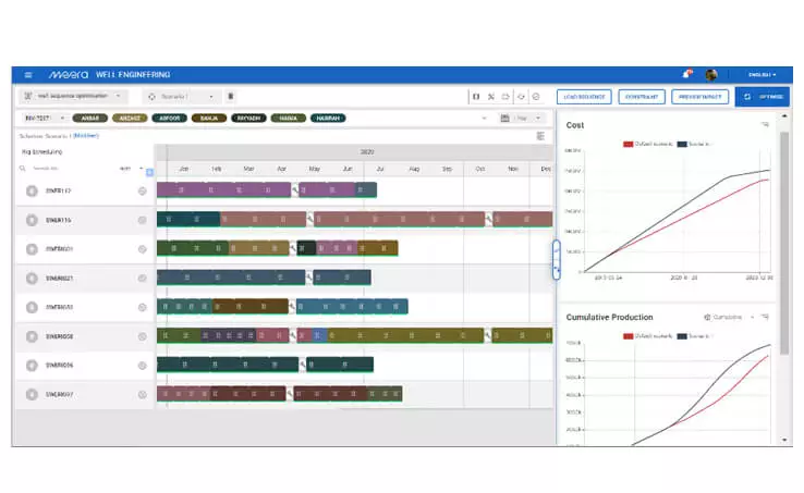 • Drilling sequence optimizer and scenario management provide the capability to centrally